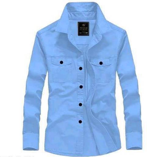 GOTIETNTERPRISE Men Solid Casual Light Blue Shirt