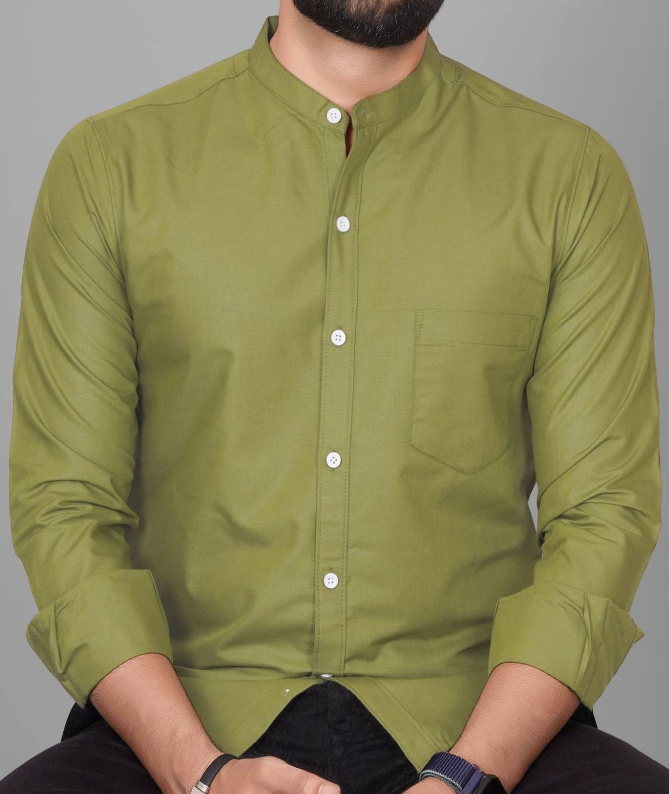 Tyzlo Men Regular Fit Solid Mandarin Collar Casual Shirt