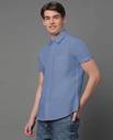 Slate Grey solid cotton blend casual shirt, has a spread collar, button placket, one patch pocket, half sleeves, curved hem, regular fit shirt, smooth and breathable fabric
