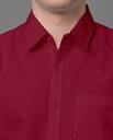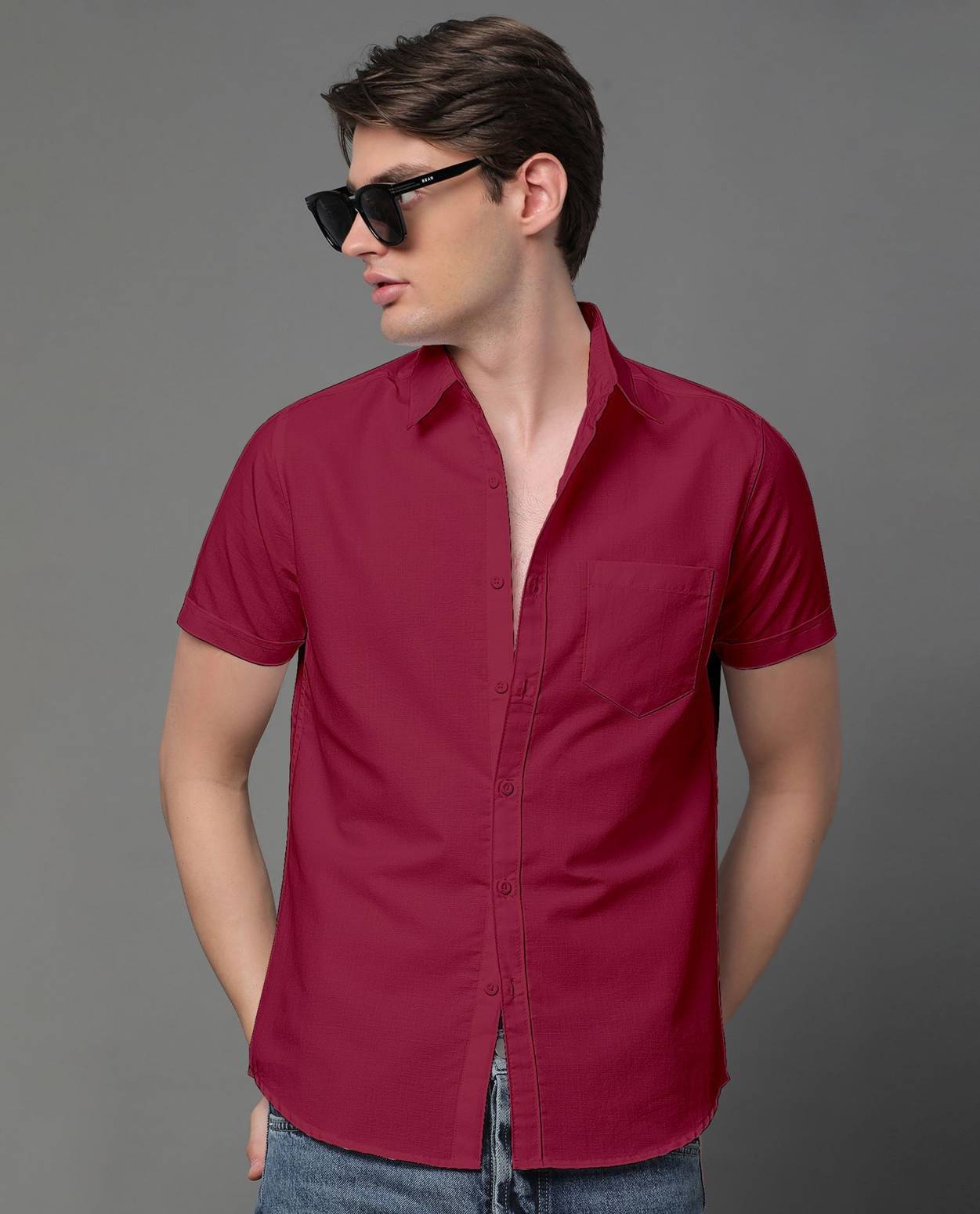 Maroon solid cotton blend casual shirt, has a spread collar, button placket, one patch pocket, half sleeves, curved hem, regular fit shirt, smooth and breathable fabric
