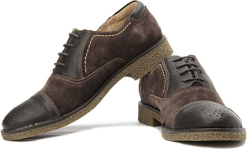 Exude your attitude-rich masculinity and charming persona at work by slipping into this pair of Grande Corporate Casuals from tZaro. Crafted in a rich shade of choco, this pair of casual shoes features a panel and stitch detail. For an appealing look, you can team these shoes with a checkered shirt and a pair of jeans.