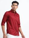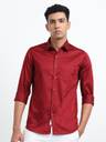 VLKM Men Solid Casual Maroon Shirt