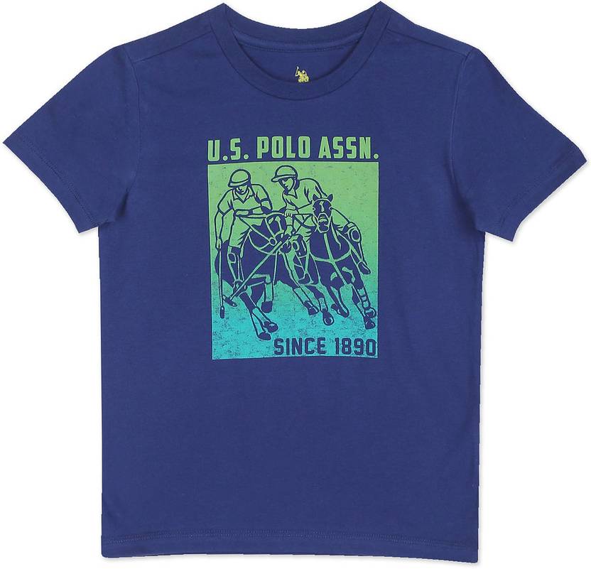 U.S. POLO ASSN. Boys Typography, Printed Cotton Blend Regular T Shirt (Blue, Pack of 1)