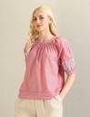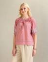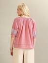 Prepare for the sizzle of summer with the Sunshine Ready collection, inspired by Brazil's lively essence, boasting bold colours, vibrant patterns and intricate crochet details for a bright and spirited ensemble. Embrace sunny days with the charming sophistication of this top from the Sunshine Ready collection. This top offers a versatile round-neck top adorned with delicate floral embroidery, perfect for adding a playful yet polished touch to any ensemble.
