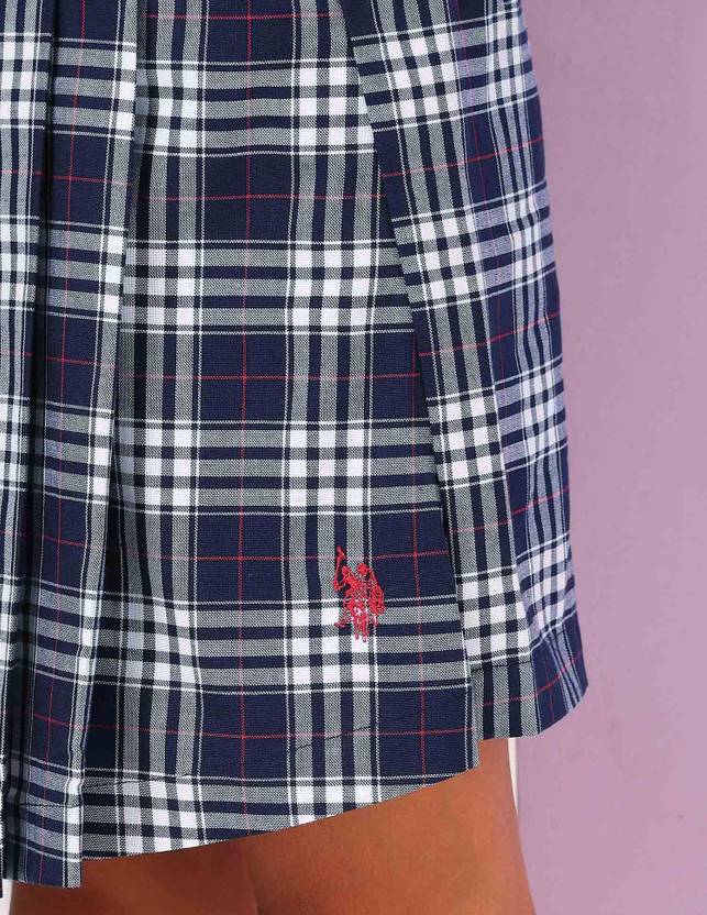 U.S. POLO ASSN. Checkered Girls Wrap Around Blue, White Skirt