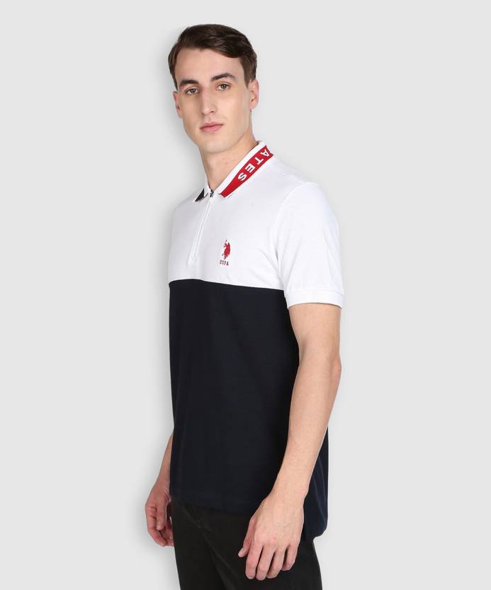 U.S. POLO ASSN. Colorblock Men Polo Neck White, Navy Blue T-Shirt