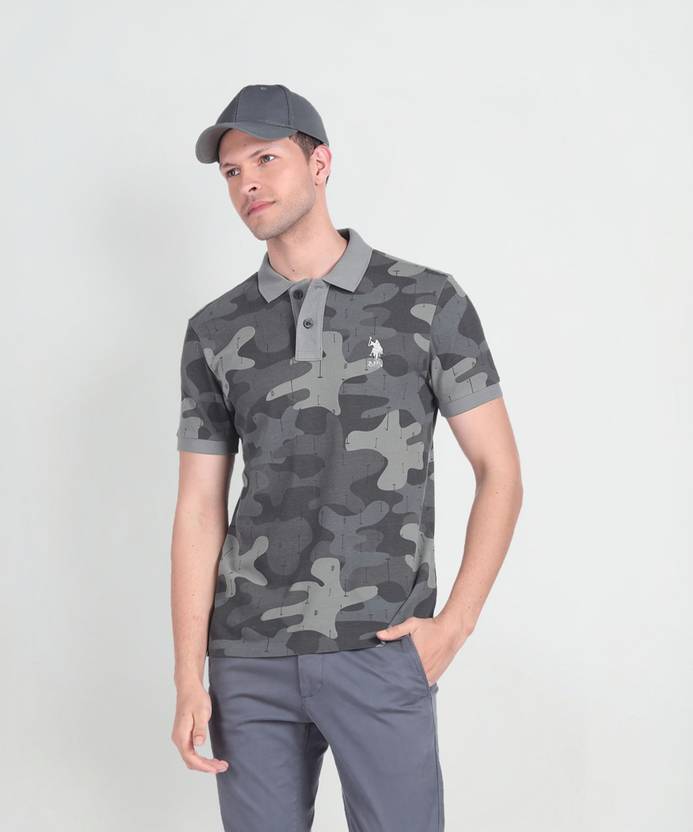 U.S. Polo Assn. Denim Co. Printed Men Polo Neck Grey T-Shirt