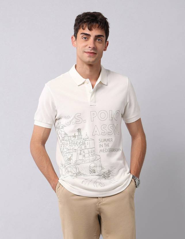 U.S. Polo Assn. Denim Co. Printed Men Polo Neck White T-Shirt