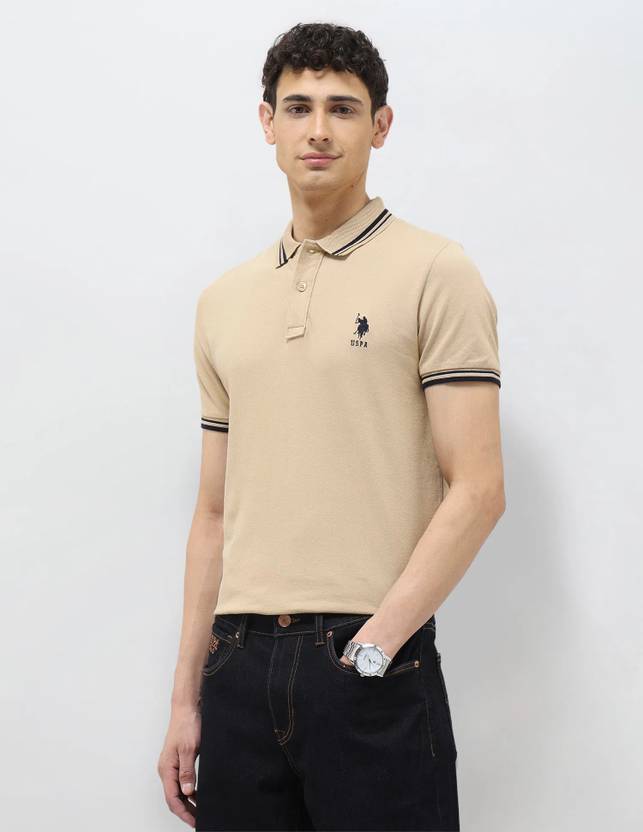 U.S. Polo Assn. Denim Co. Solid Men Polo Neck Beige T-Shirt