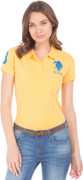 U.S. POLO ASSN. Embroidered Women Polo Neck Yellow T-Shirt