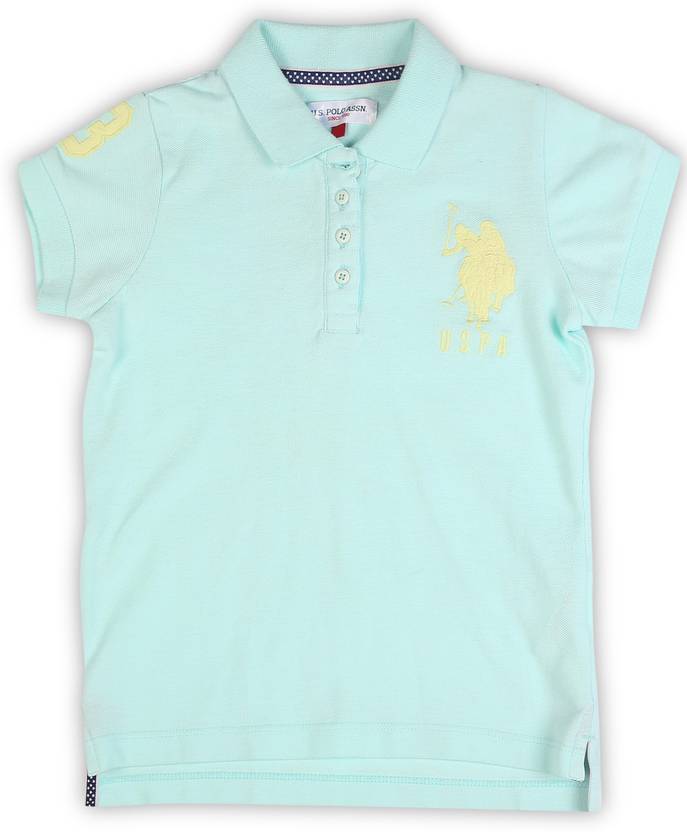 U.S. POLO ASSN. Girls Solid Cotton Blend Regular T Shirt (Blue, Pack of 1)