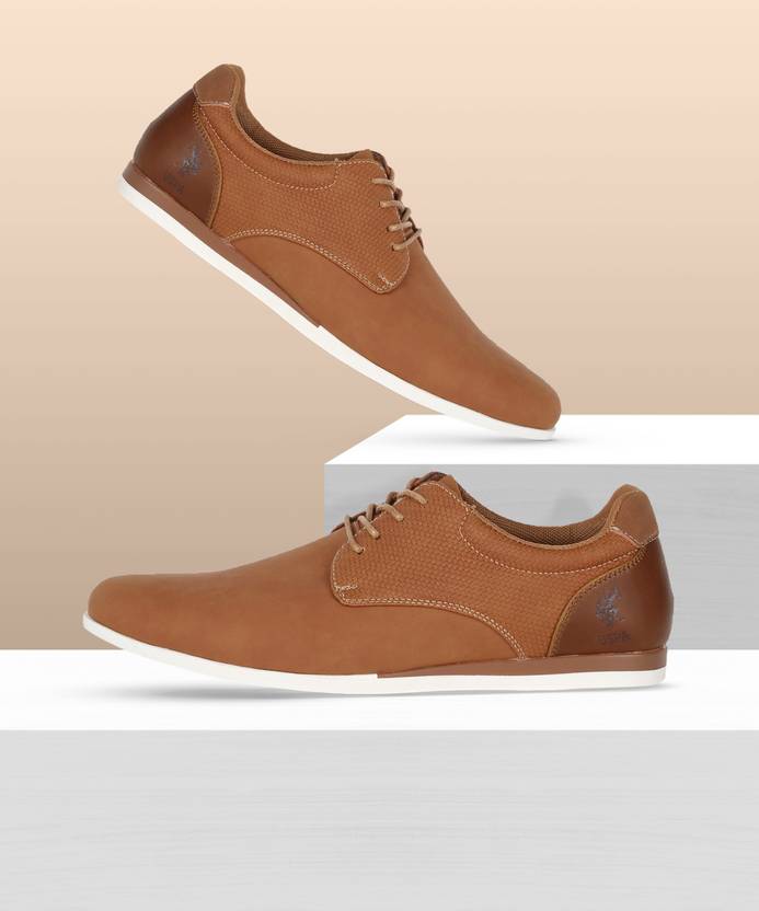 These lace-ups in tan shade are great to style with semi formal looks. Go for a sharp brown shirt and fitted beige pants. Use tan accessories to complete the look.