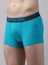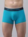Blue solid trunks, has an outer elasticated waistband, a double-layered contoured front pouch About the Product Trunk with Coolmax fiber technology transports moisture away from the body & keeps cool & dry by evaporating the body temperature to atmosphere. Ultra soft waistband with bold contrasting branding gives sporty look.
