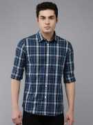 U.S. POLO ASSN. Men Checkered Casual Blue Shirt
