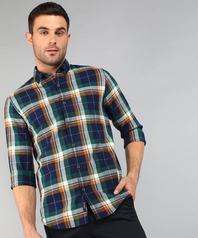 U.S. POLO ASSN. Men Checkered Casual Blue Shirt
