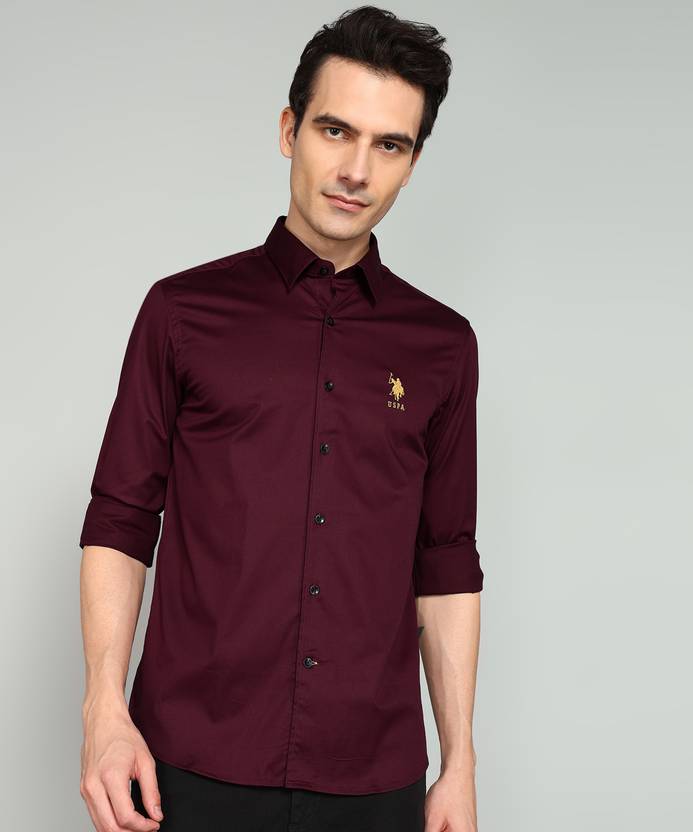 U.S. POLO ASSN. Men Solid Casual Maroon Shirt