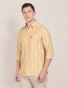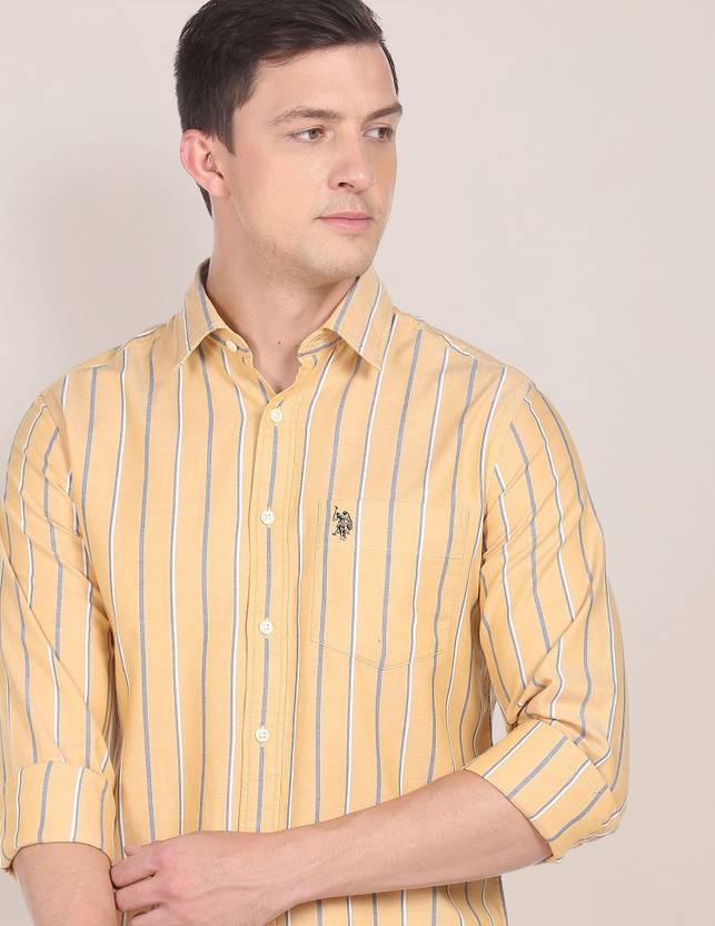U.S. POLO ASSN. Men Striped Casual Yellow, White, Light Blue Shirt