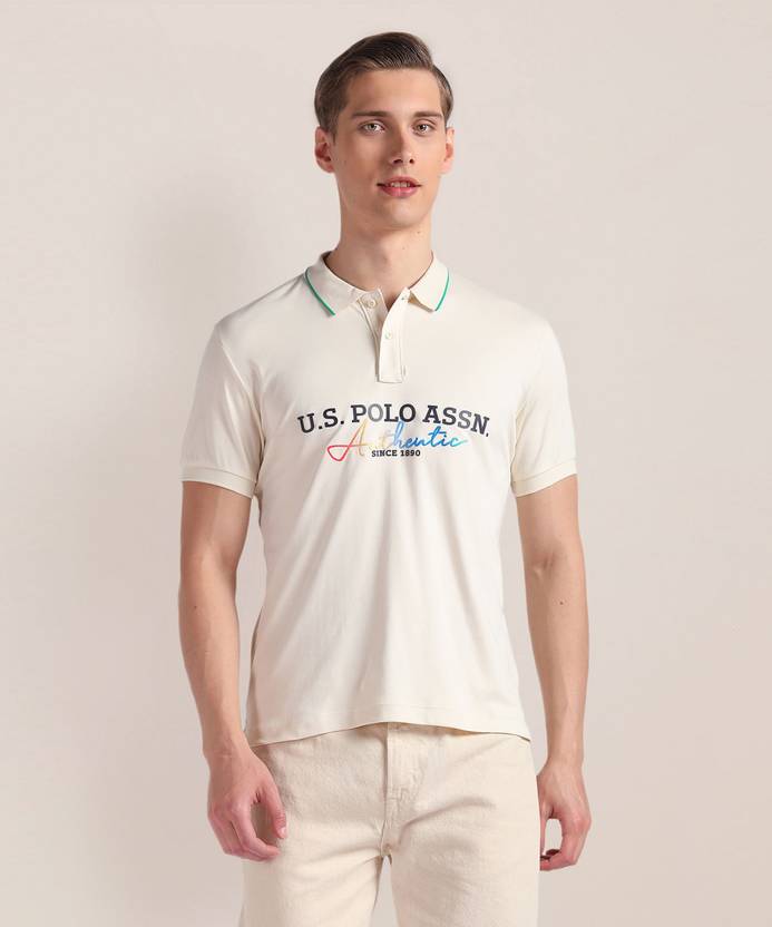 U.S. POLO ASSN. Printed Men Polo Neck Beige T-Shirt