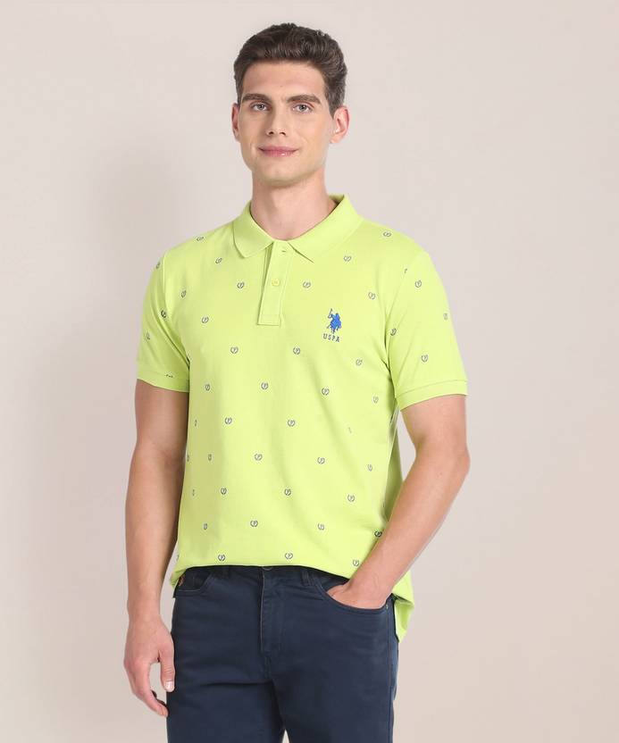 U.S. POLO ASSN. Printed Men Polo Neck Green T-Shirt