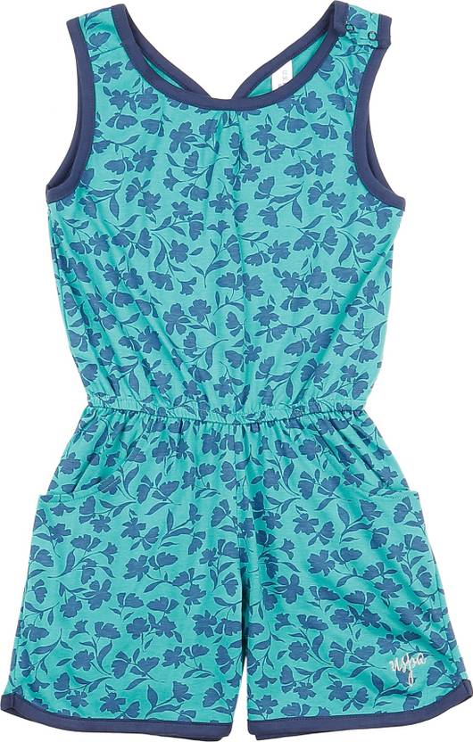 U.S. POLO ASSN. Romper For Girls Casual Printed Cotton Blend (Green, Pack of 1)