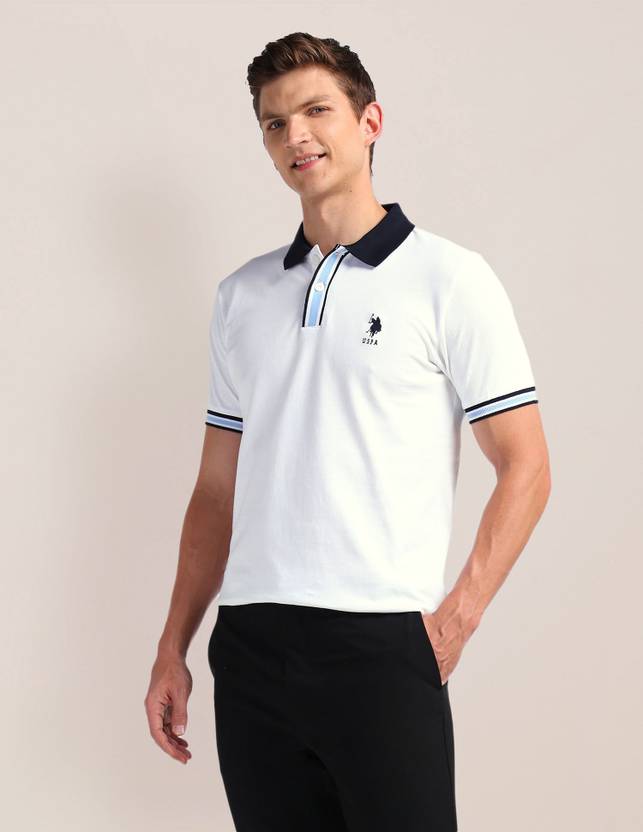U.S. POLO ASSN. Self Design Men Round Neck White T-Shirt