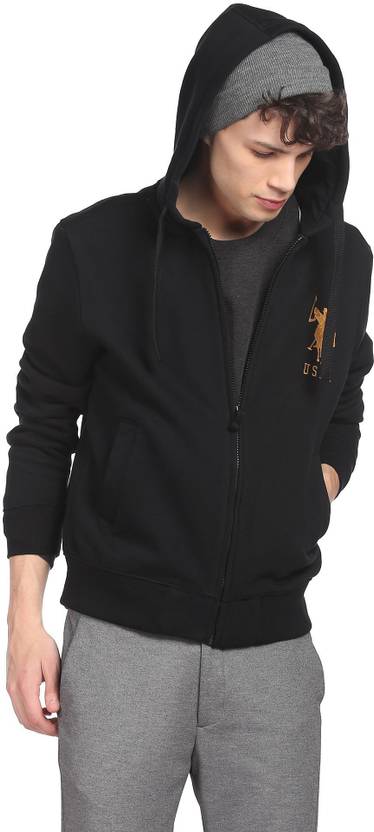 U.S. POLO ASSN. Solid Hooded Neck Casual Men Black Sweater