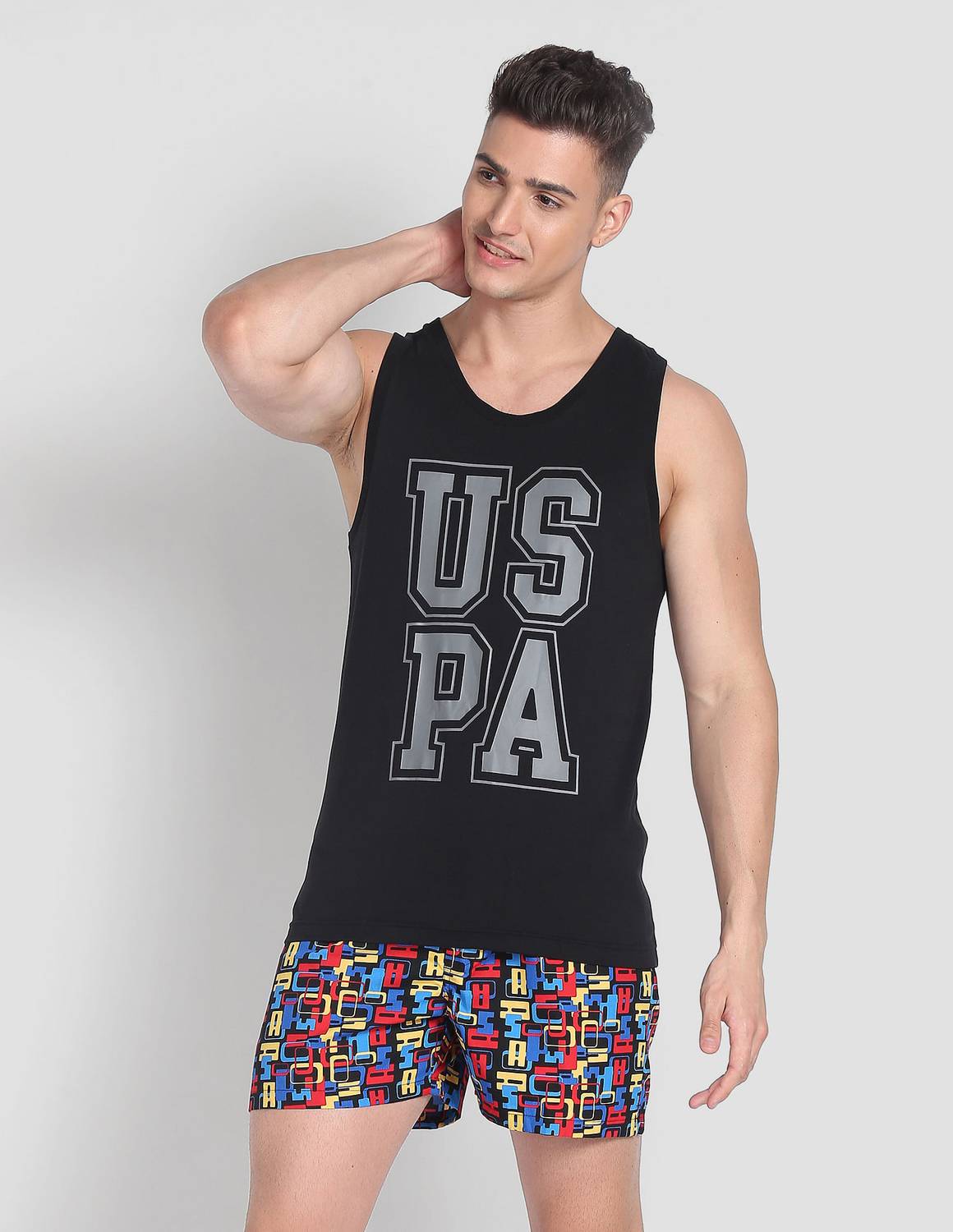 Pack of 1: Mid-rise sits comfortably at your waist Elasticized drawstring stretch waistband Dual side pockets to store your essentials Features a printed logo and trendy solid pattern Knitted construction