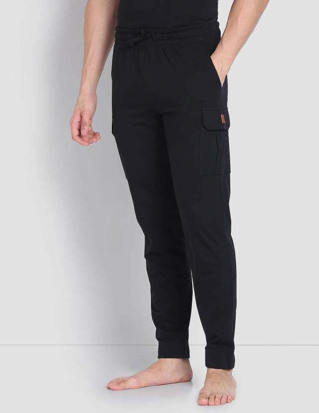 Pack of 1: Mid-rise sits comfortably at your waist Elasticized waistband with drawstrings for enhanced grip Dual side pockets Two cargo pockets with Velcro closure to safely store your essentials Banded hems for easy movement Reap the benefits of breathable cotton and durable polyester with this unique blended fabric Solid pattern with a leather patch logo on pocket