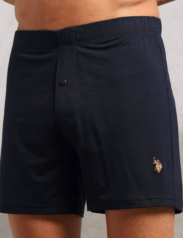 Men's Solid Navy Comfort Fit Inner Boxer - Pack of 1 . 95% Lyocell, 5% Spandex. Mid-rise sits comfortably at your waist. Elasticised waistband for enhanced comfort. Functioning fly with button closure for ease. Solid pattern. Signature 18-hour jersey knit construction that is less prone to creases. Ultra-soft lyocell blend for cool, all-day comfort. Tailored comfort fit ensures ridiculous comfort.
