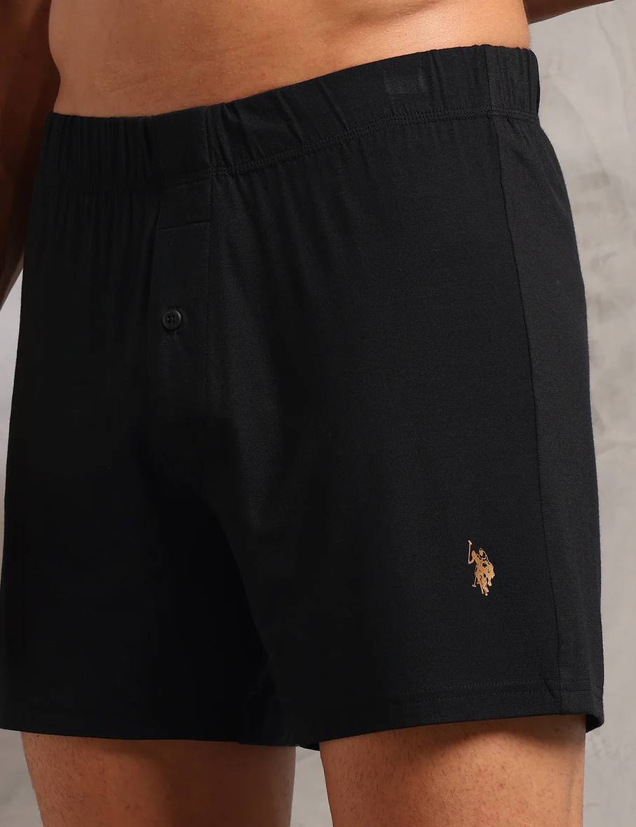 Men's Solid Black Comfort Fit Inner Boxer - Pack of 1 . 95% Lyocell, 5% Spandex. Mid-rise sits comfortably at your waist. Elasticised waistband for enhanced comfort. Functioning fly with button closure for ease. Solid pattern. Signature 18-hour jersey knit construction that is less prone to creases. Ultra-soft lyocell blend for cool, all-day comfort. Tailored comfort fit ensures ridiculous comfort.