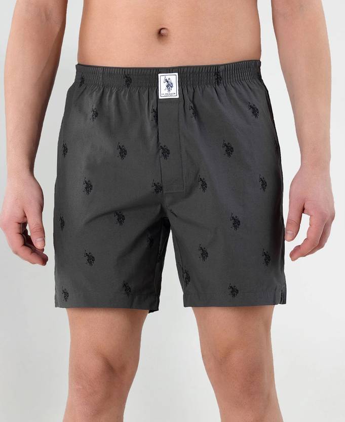 Men's Printed Asphalt Regular Fit Boxer Shorts with Side Pockets - Pack of 1 (#I021). 100% Cotton. Mid-rise sits comfortably at your waist. Waistband with brushed inner elastic and contrast logo. Concealed button fly closure. Dual side pockets to store your essentials. The pure cotton fabric has better breathability and absorbency. The product is tagless to provide a smooth surface and minimises any irritation. Showcases an all-over logo printed pattern. Regular weave construction gives a classic appearance.