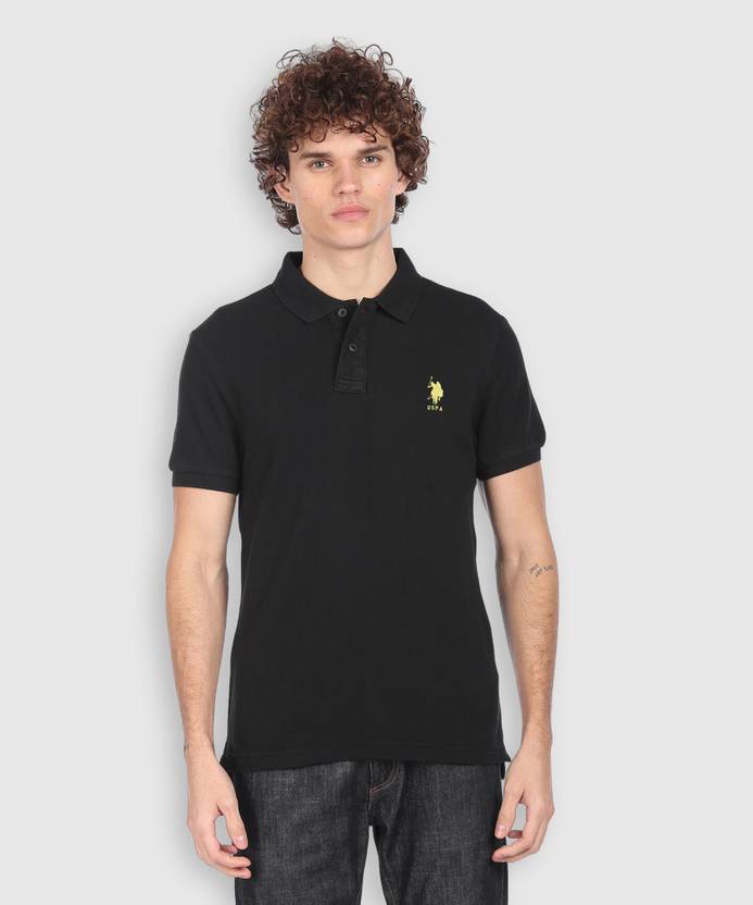 U.S. POLO ASSN. Solid Men Polo Neck Black T-Shirt
