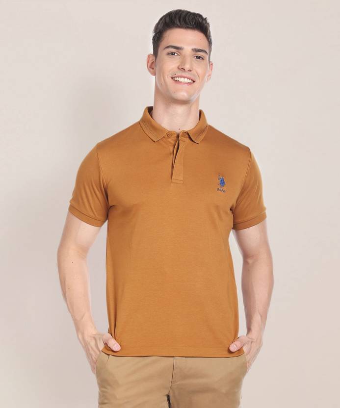 U.S. POLO ASSN. Solid Men Polo Neck Brown T-Shirt
