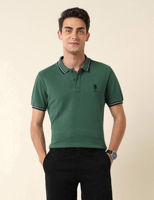 U.S. POLO ASSN. Solid Men Polo Neck Dark Green T-Shirt