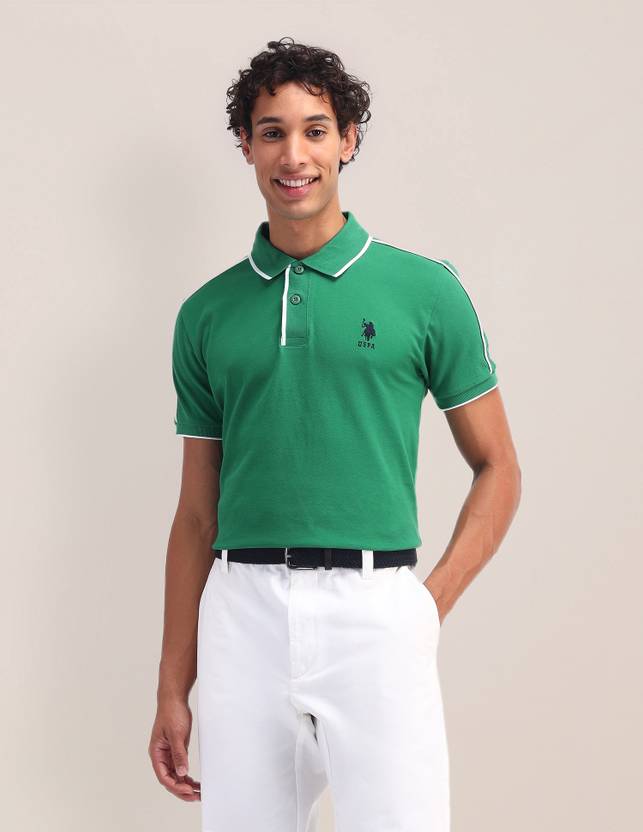 U.S. POLO ASSN. Solid Men Polo Neck Green T-Shirt