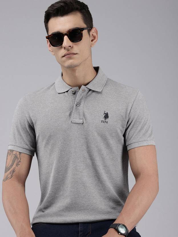 U.S. POLO ASSN. Solid Men Polo Neck Grey T-Shirt
