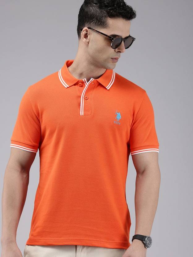 U.S. POLO ASSN. Solid Men Polo Neck Orange T-Shirt