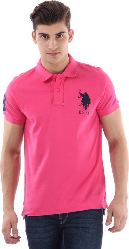 U.S. POLO ASSN. Solid Men Polo Neck Pink T-Shirt