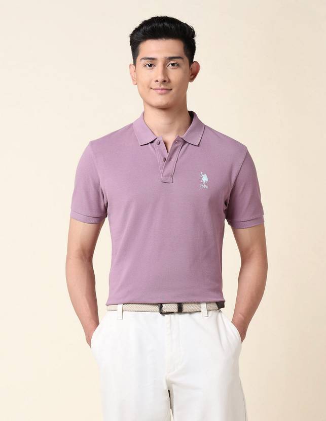 U.S. POLO ASSN. Solid Men Polo Neck Purple T-Shirt