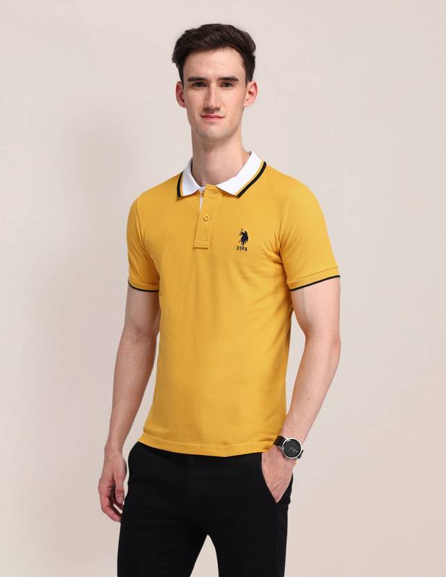 U.S. POLO ASSN. Solid Men Polo Neck Yellow T-Shirt