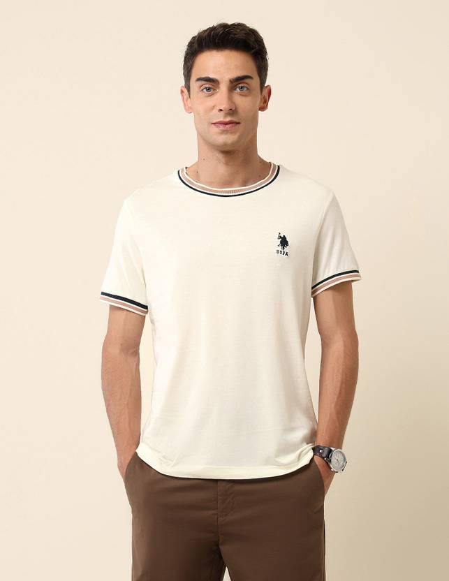 U.S. POLO ASSN. Solid Men Round Neck White T-Shirt
