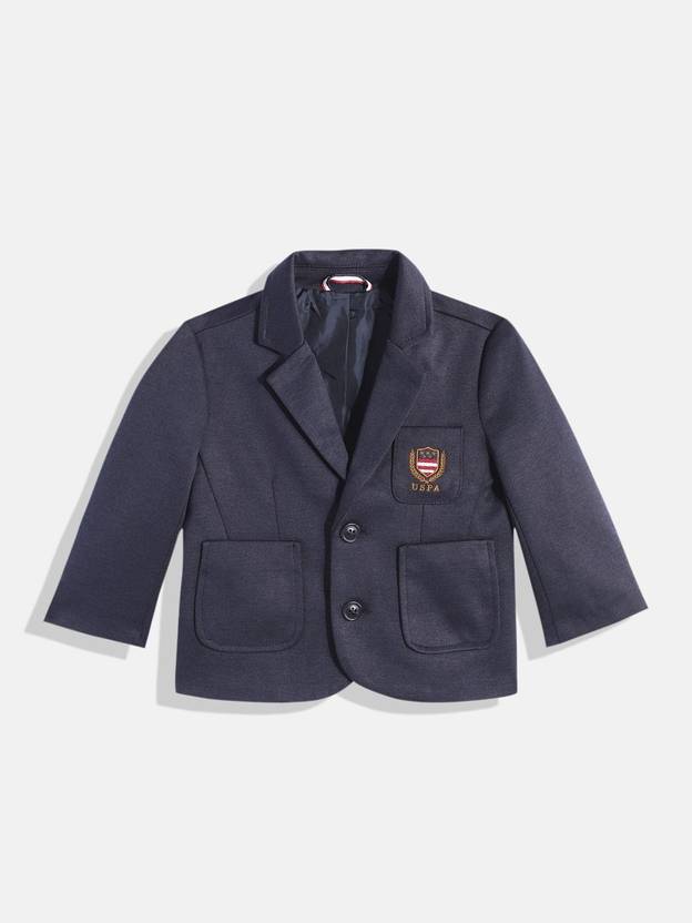 U.S. POLO ASSN. Baby Boys Solid Single Breasted Casual Blazer (Dark Blue)