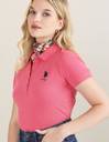This solid polo shirt features short sleeves and a logo detail at chest and comes with cotton-stretch construction.