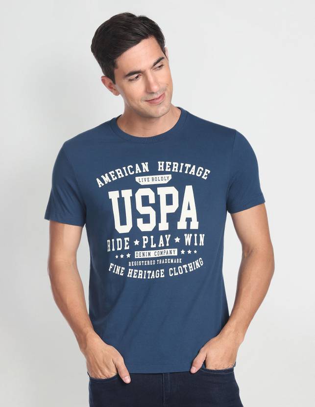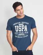 U.S. POLO ASSN. Typography Men Round Neck Blue T-Shirt