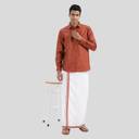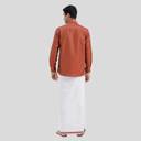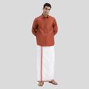 Elegant Traditional Design: The full sleeve shirt in brown shade is perfectly paired with a matching single dhoti, giving a sophisticated and graceful ethnic appearance suitable for weddings, festivals, and cultural occasions.