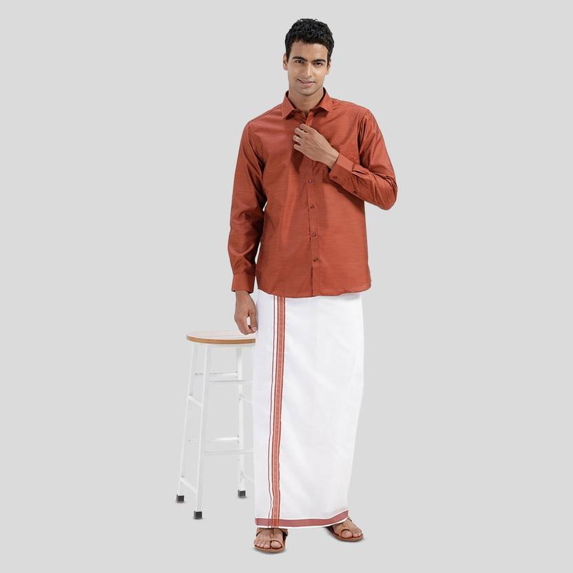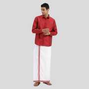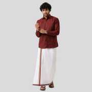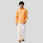 Elevate your traditional wardrobe with the Uathayam Divine Shirt Matching Fancy Border Single Dhoti Set For Men. This stunning set features a stylish shirt paired with a beautifully designed Single dhoti, perfect for special occasions or cultural events. Add a touch of sophistication to your ensemble with this exquisite outfit.