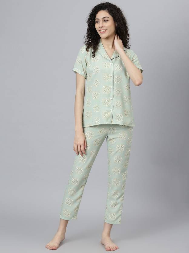 UBC ENTERPRISE Women Shirt & Pyjama set Light Green Printed