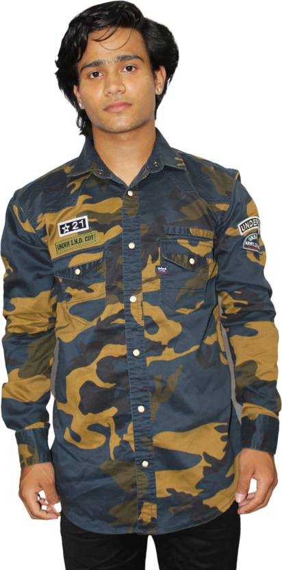 Men Slim Fit Military Camouflage Spread Collar Festive Shirt