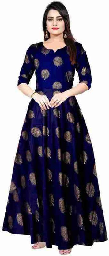 Women Printed Viscose Rayon Anarkali Kurta (Dark Blue)
