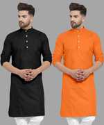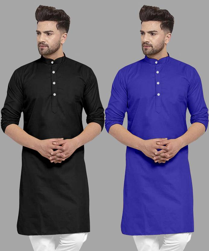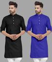 Pack of 2 Men Solid Cotton Blend Straight Kurta (Blue, Black)